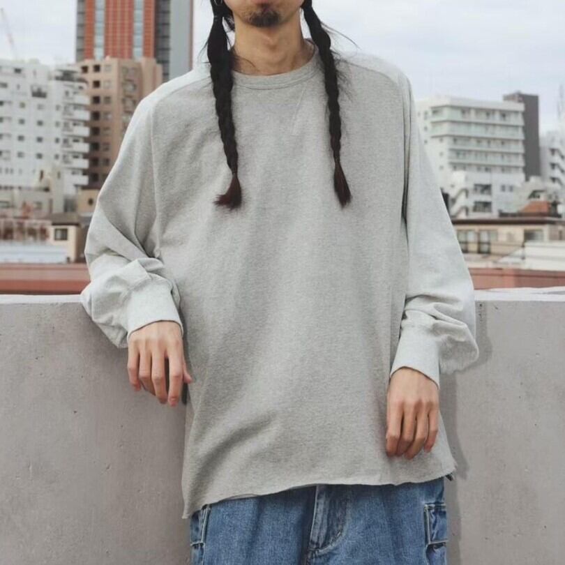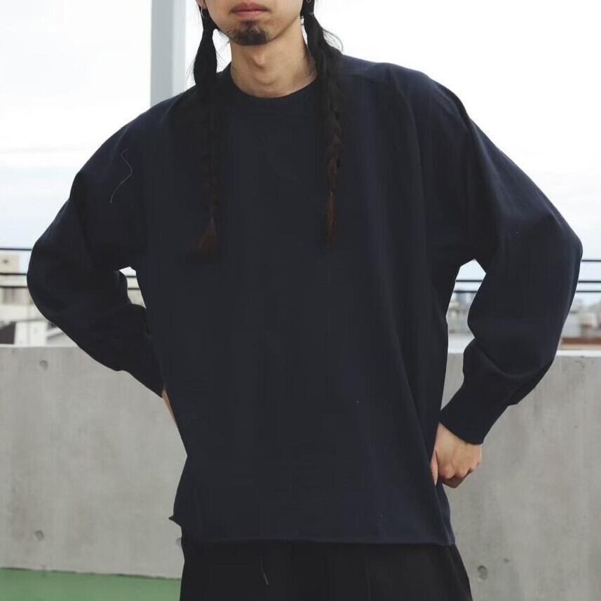 を追求した、オリジナルの先染め天竺素材を編み立てました。フリーダムスリーブのパターンを取り入れ、ヴィンテージのディテールと緩めのサイジングが特徴です。