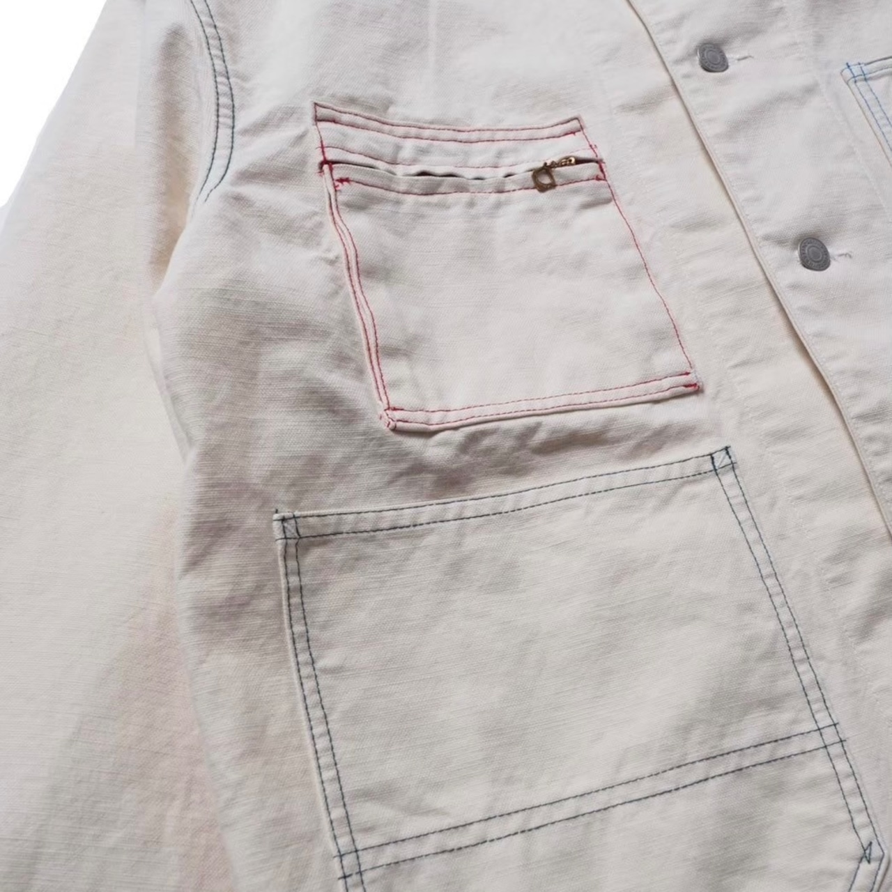 右胸のジップポケットは60'sのFINCK'S RED/BARのエプロンから抜粋