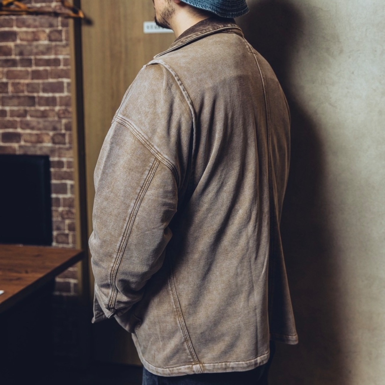 デニム調のスウェットをヒントに、今作はダック地をスウェットで表現。