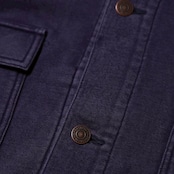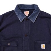 リベットやトリプルステッチなどのディティールでワークの仕様を再現し、可抜染料と弱脱色加工でビンテージ感を表現。
