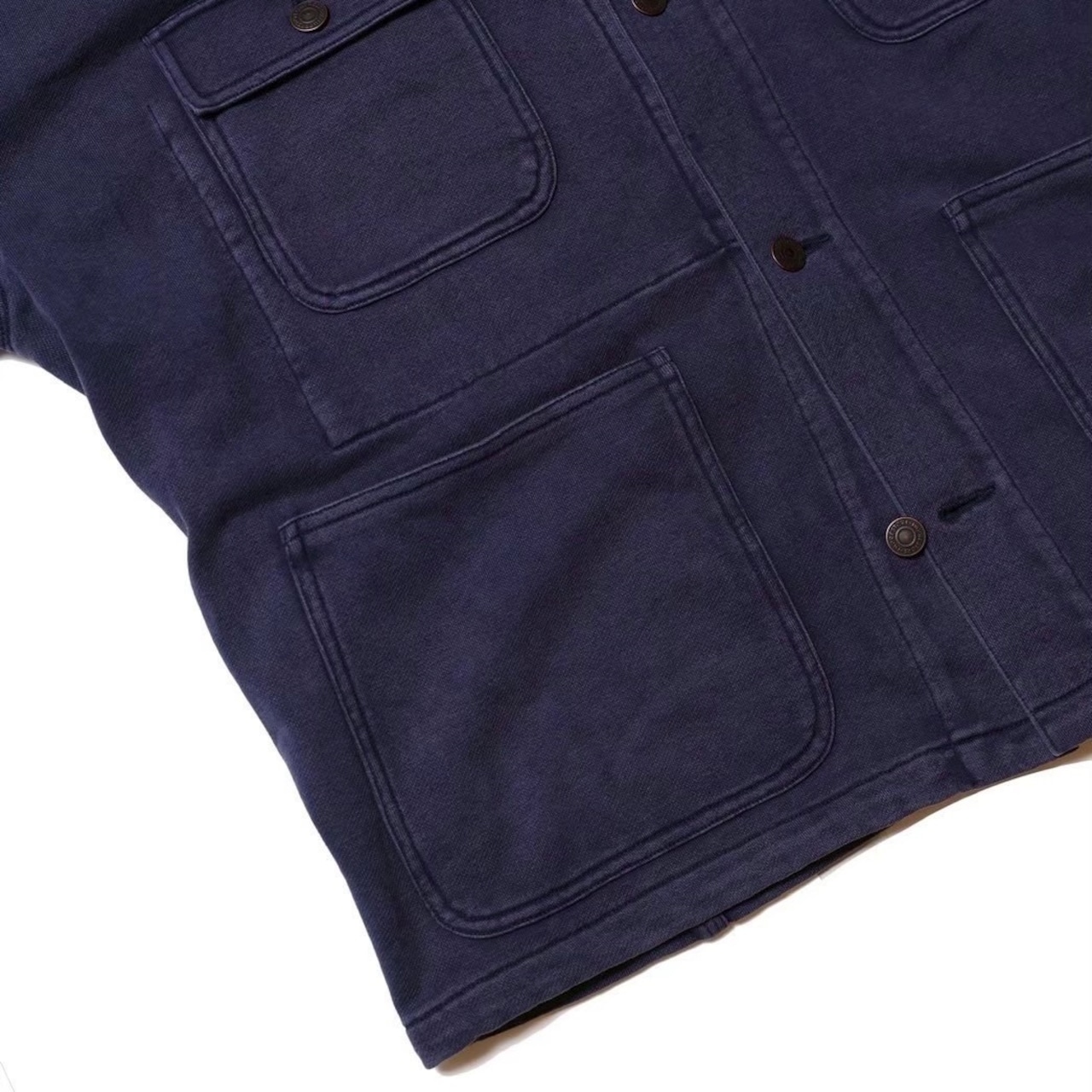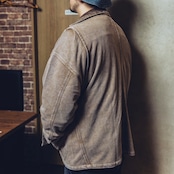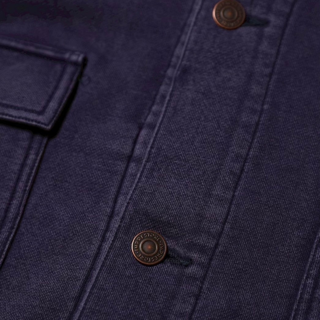 リベットやトリプルステッチなどのディティールでワークの仕様を再現し、可抜染料と弱脱色加工でビンテージ感を表現。