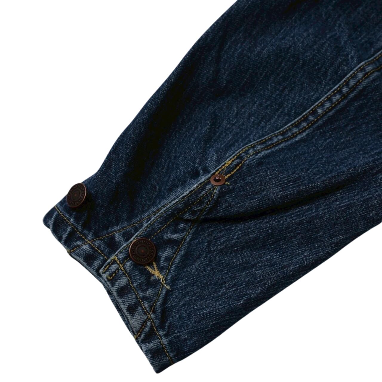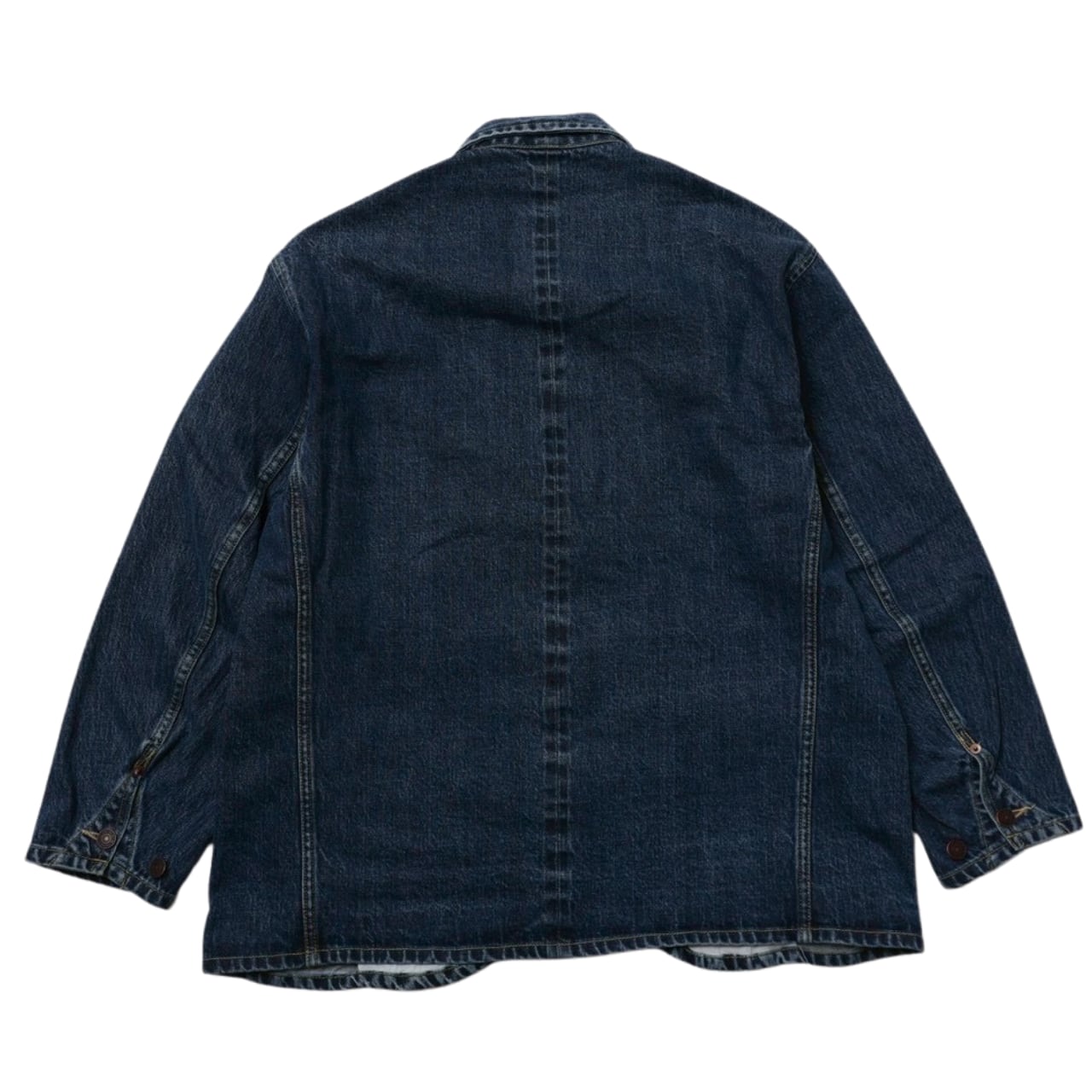 先ずは大身返しの導入でワーク色を軽減。裾のカーブやポケットの角度など細かな調整を経て、袖のスリット、背中心とポケット口の赤耳使い、ポケット口の隠しリベットなどのディティールを詰め込んでます!