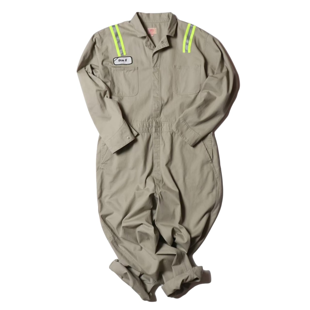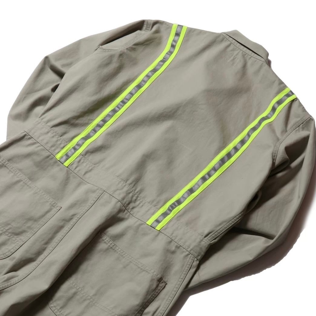 蛍光トリコットテープの上にリフレクターテープを重ね縫いし、ワッペンと共に90’sリアルワーカーの空気感をプラス。