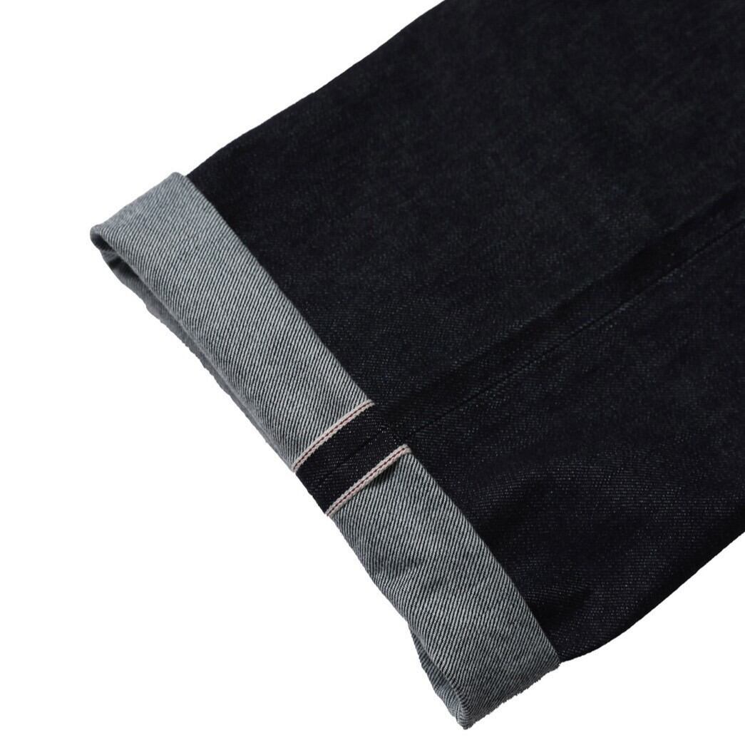 硫化染料で染色したムラ糸を、旧織機で編み立てた13オンスのIMPRESTOREオリジナルの赤耳デニムです。低速の旧織機で織りあげる事で80年代前半の先染のブラックデニムの表情と風合いを再現しております。